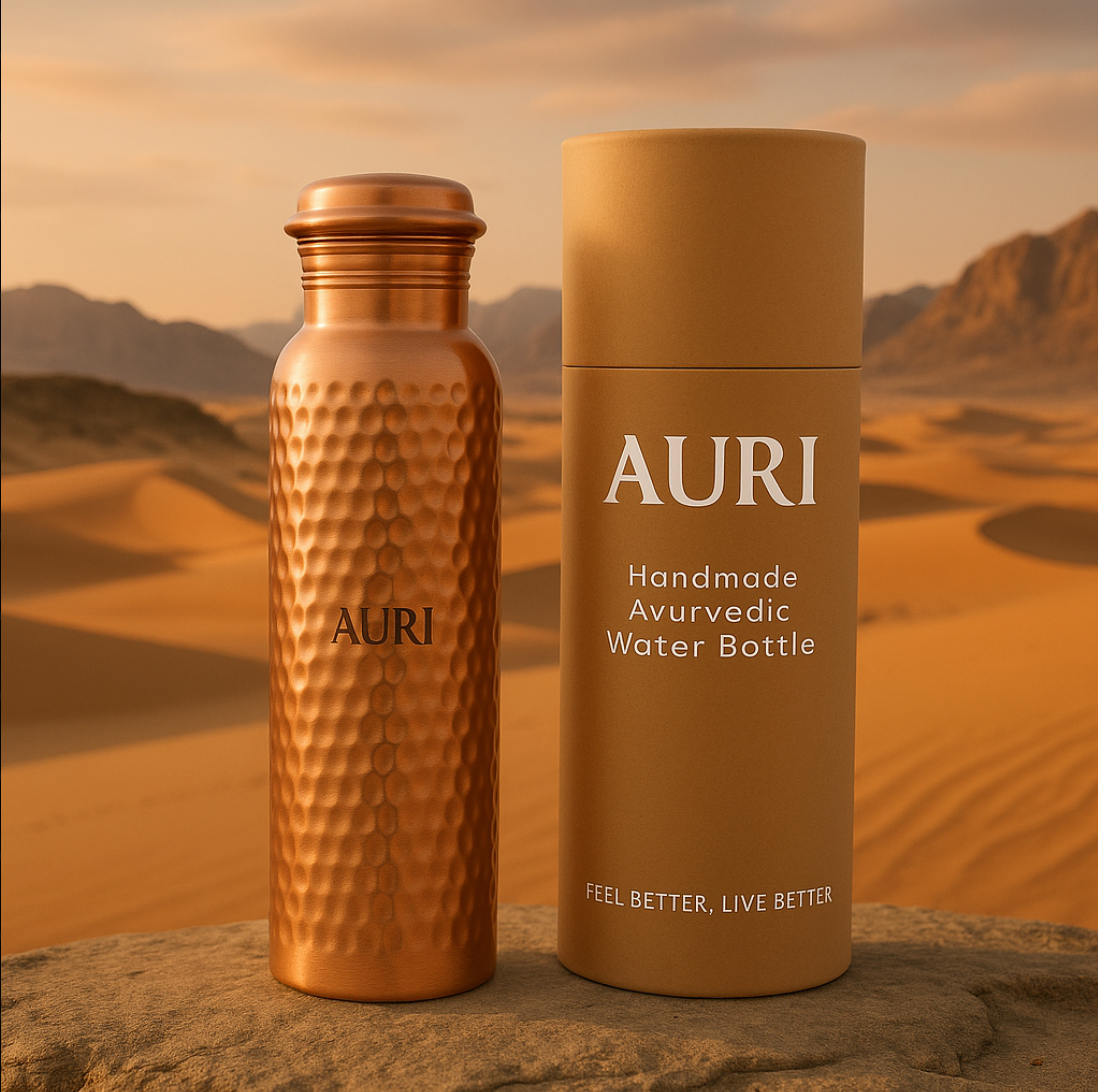 Each Auri bottle is crafted using high-grade copper raw materials responsibly sourced from India — the birthplace of Ayurveda. The finishing and distribution of our bottles take place across multiple specialized facilities and warehouses around the world, ensuring consistent quality and timely delivery wherever you are. This thoughtful blend of heritage, craftsmanship, and modern efficiency makes every Auri bottle a perfect companion for your wellness journey.